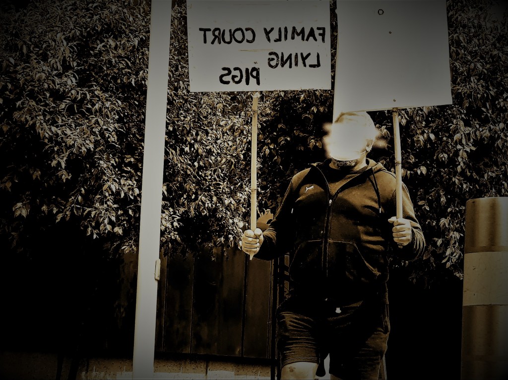 I saw picket signs, raised high in the air, flown like national flags for all to see. The signs spoke names whom I will not mention. These names were appended by “… family court. Lying pigs!” Direct insults. Defamations. There must have been an absolute hatred brewing for these flags to fly. And fly they did. These signs flew from one side of the courtyard to the other, calling out to the worlds for them to be seen.