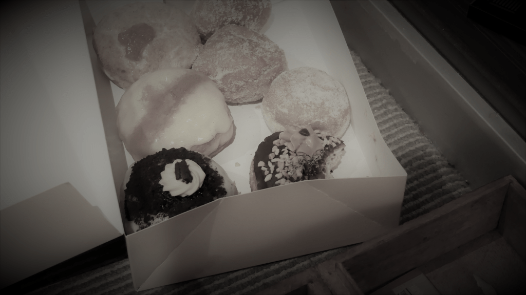 We bought an assortment of flavoured donuts, as well as some traditional jams. He went right for the Baby Ruth donut. He then remembered me mentioning how much I enjoyed smoking while eating a donut. And that’s just what he did. And boy, his face lit up. The flavours had finally come out for him. Or, did the donut open up his palette? I don’t know. Likely both. Either way, he now knew what he was supposed to be experiencing.