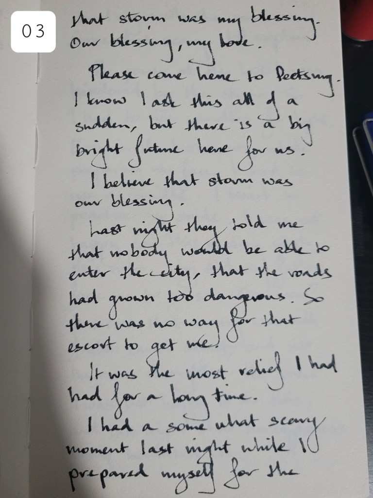 A horrible storm rained over Peetsurg last night. And that storm was my blessing. Our blessing, my love.